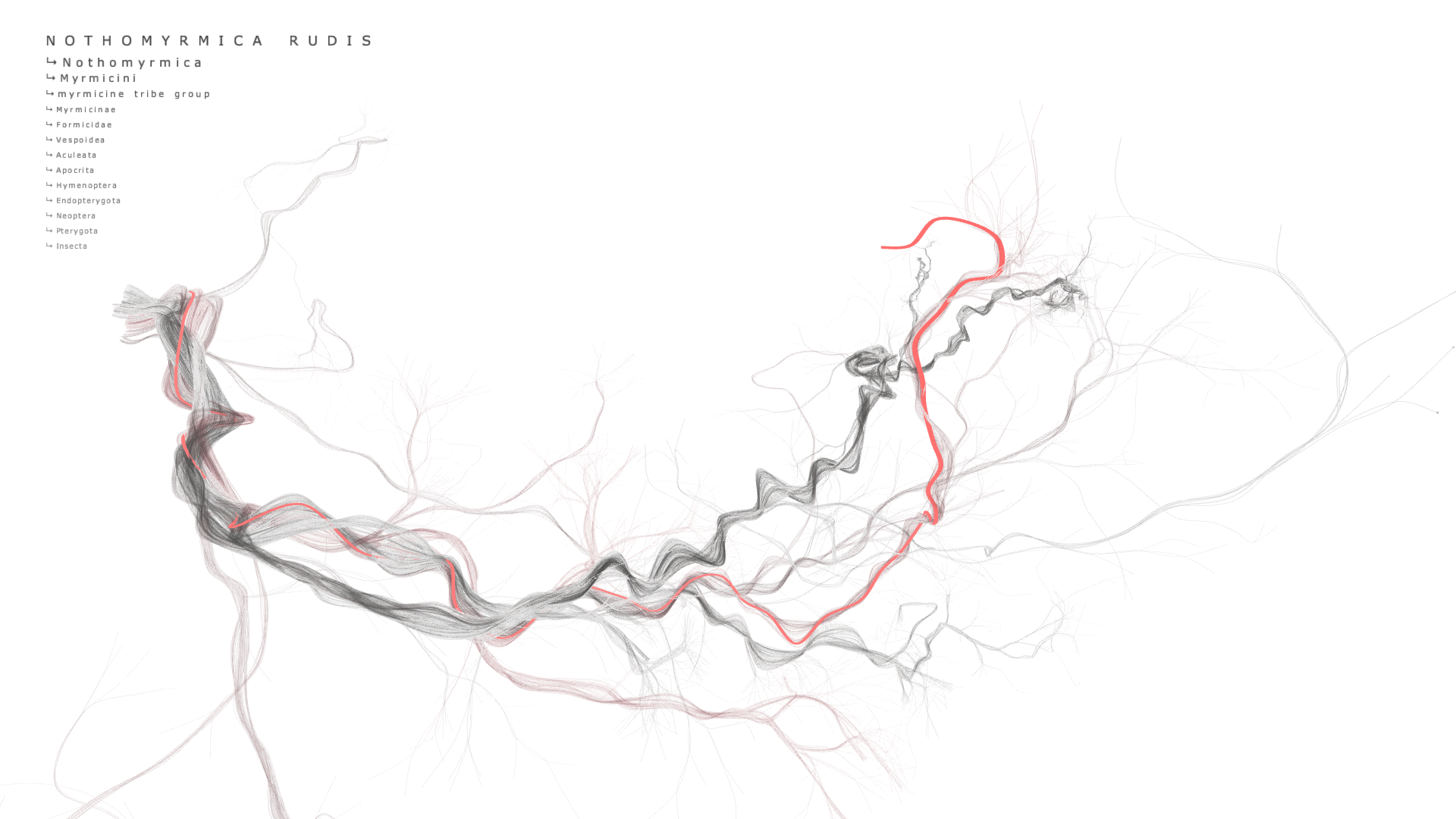 Natural Rejection visualizes extinct species within the Tree Of Life Web Project's phylogenetic database, an open source archive of about 100,000 nodes. It is a study on impermanence, mortality salience, and information loss.
